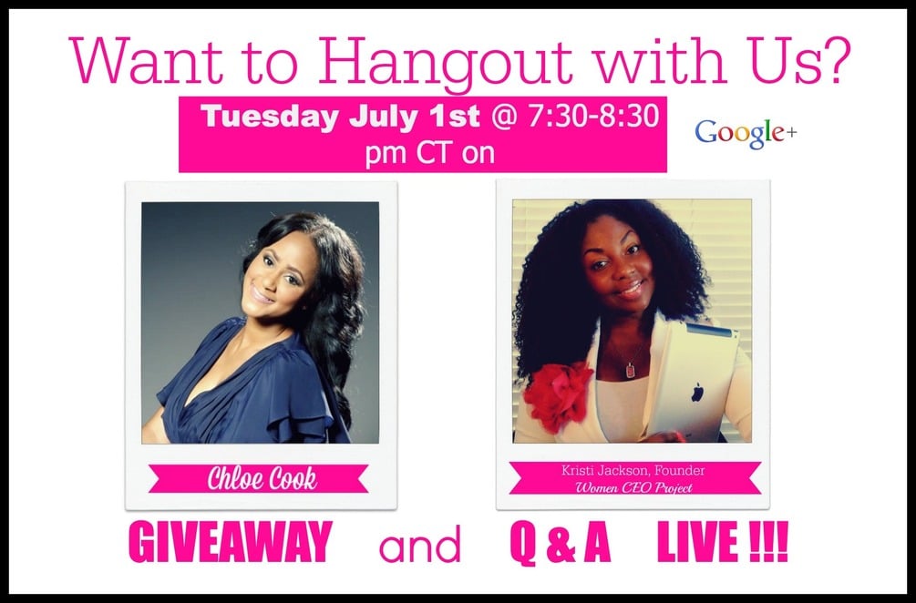 Hangout with Chloe and I tomorrow, July 1st, from 7:30-8:30pm Central Time for a FREE Business Session!